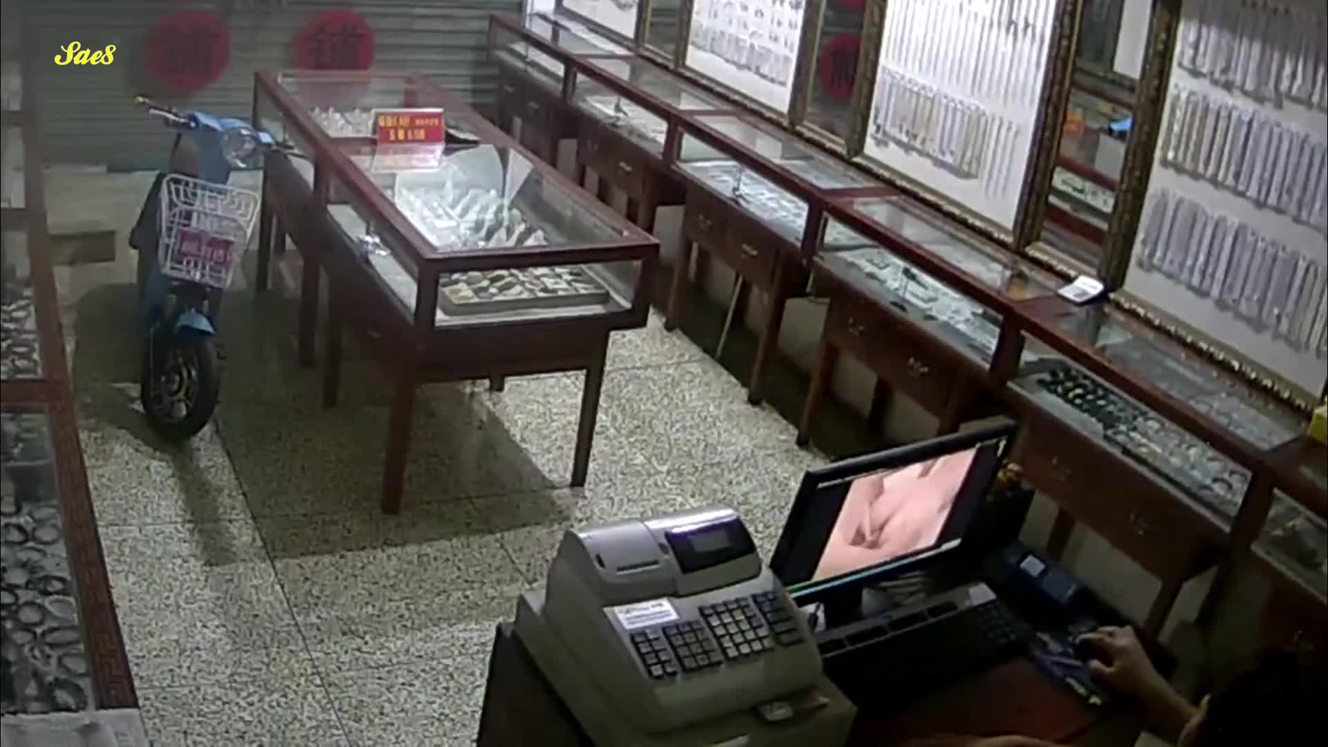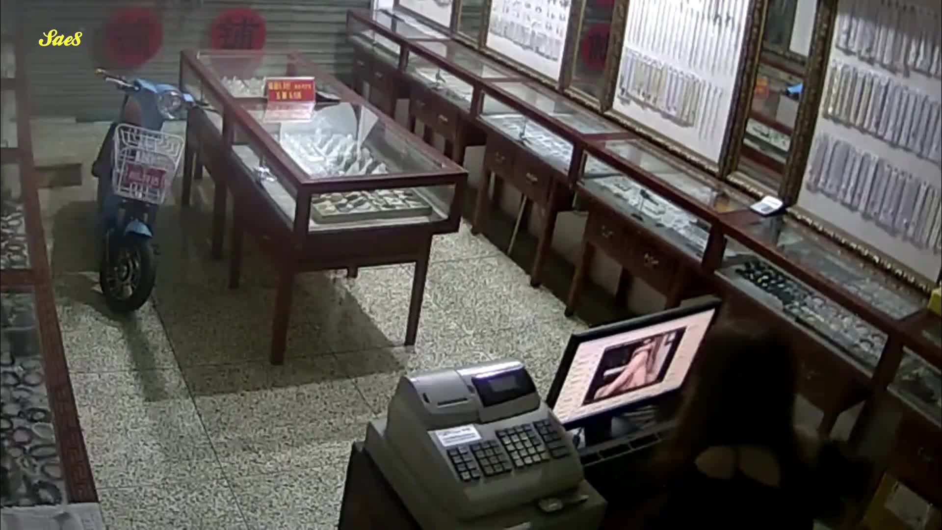 珠宝店女职员关店后看小电影饥渴难耐老板趁机拿下